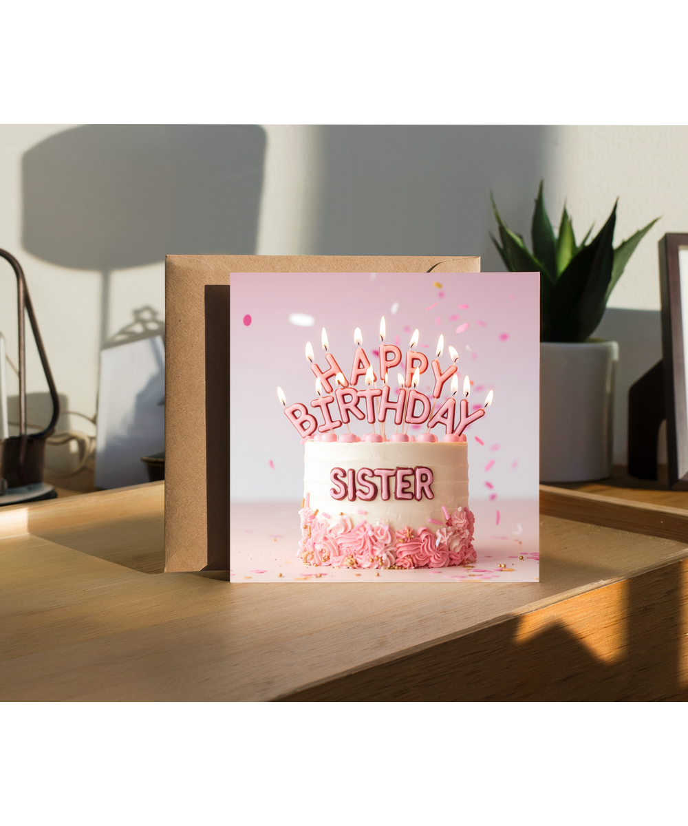 birthday card happy birthday sister pink cake