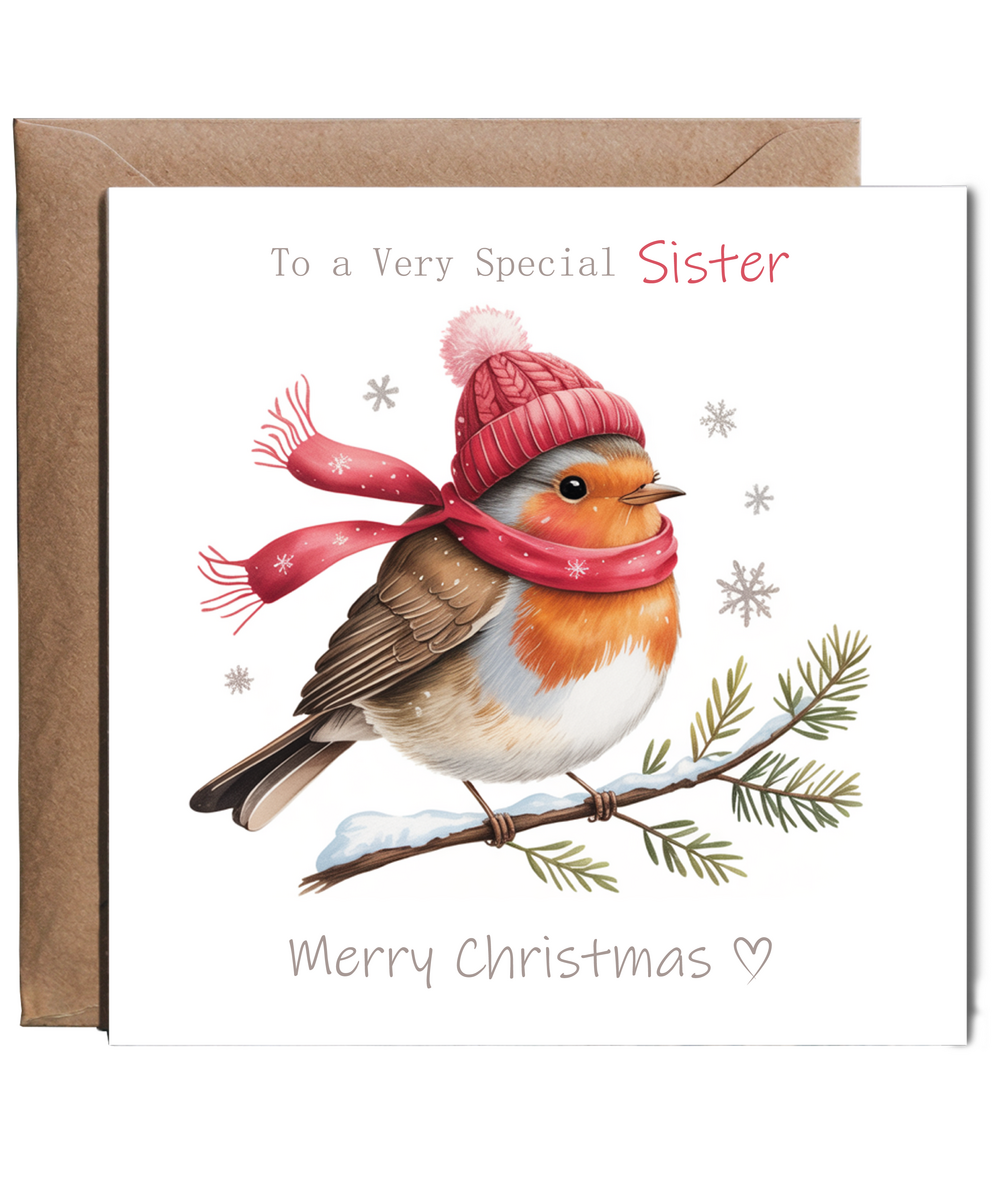 Merry Christmas Card to a Very Special Sister Cute Winter Robin