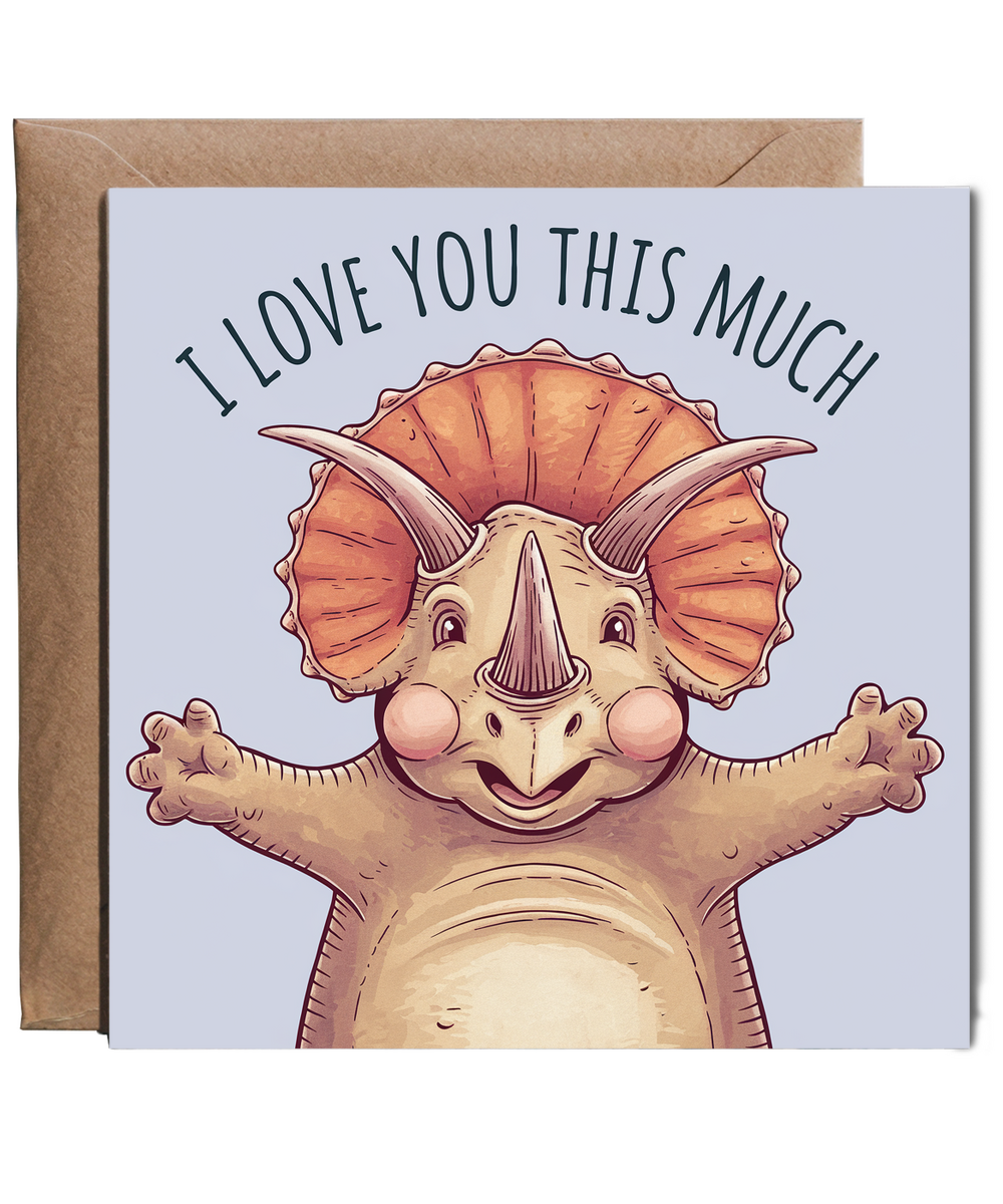 Valentines Day Card I Love you this much triceratops hug